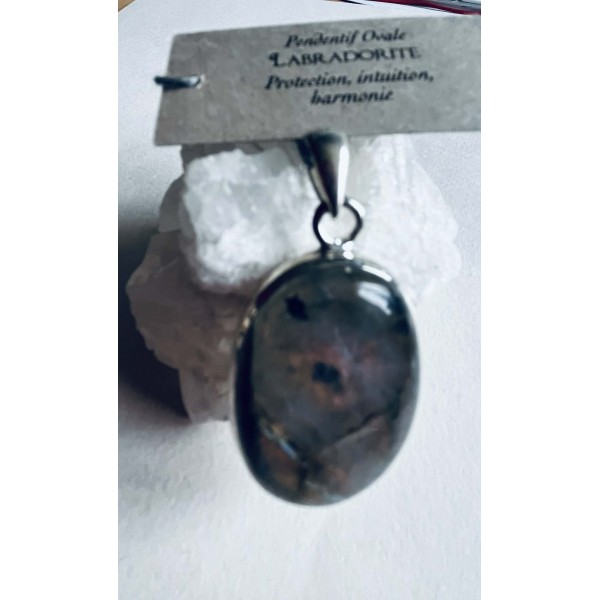 Magnifique pendentif oval en labradorite, cette pierre agit comme une sorte de bouclier qui absorbe les énergies négatives, les dissout et protège son utilisateur!