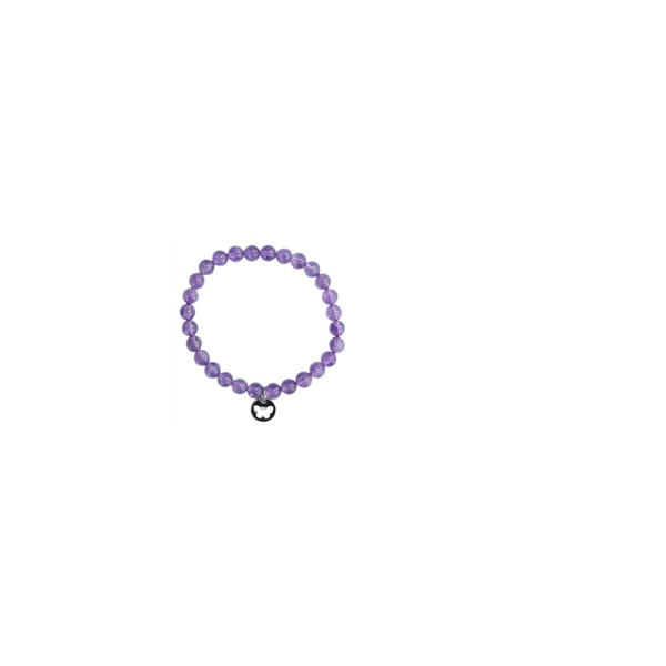Ce Bracelet élastique en pierres naturelles composé de perles en Améthyste et d'une breloque en forme de papillon finition argentée.