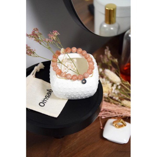 Ce bracelet élastique composé de perles en pierre naturelle de pierre de soleil qui est une pierre chauded'energie interne, de joie, de gaieté, c'est la pîerre de l'amitié...