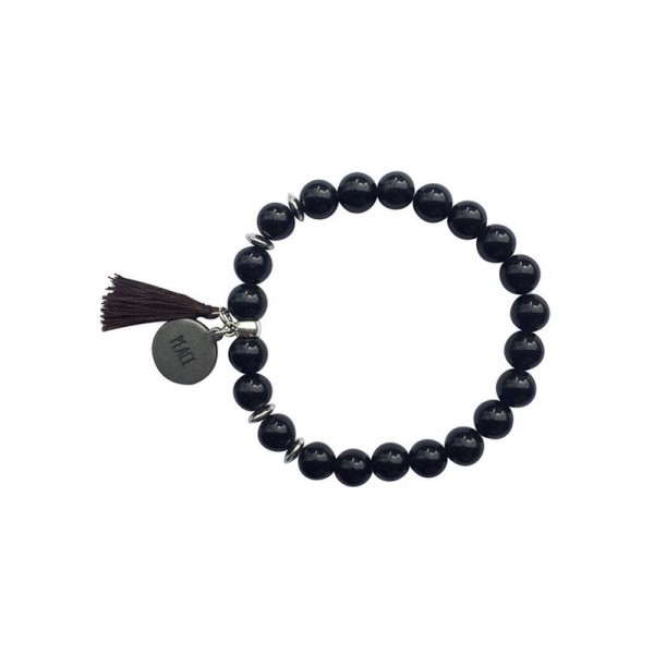 Ce Bracelet en perles rondes d'obsidienne noire 8 mm avec pompon et breloque est protecteur, il joue un rôile de puissant bouclier contre les énergies négatives...