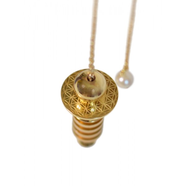 Ce pendule en laiton doré à 4 disques et un disque avec la fleur de vie gravée.