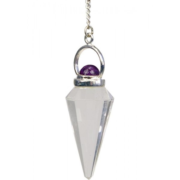 Ce Pendule en Pointe à Facettes en Cristal de Roche avec une Bille en Améthyste pour vos recherches sur les corps humain, il sert à activer les chakras...